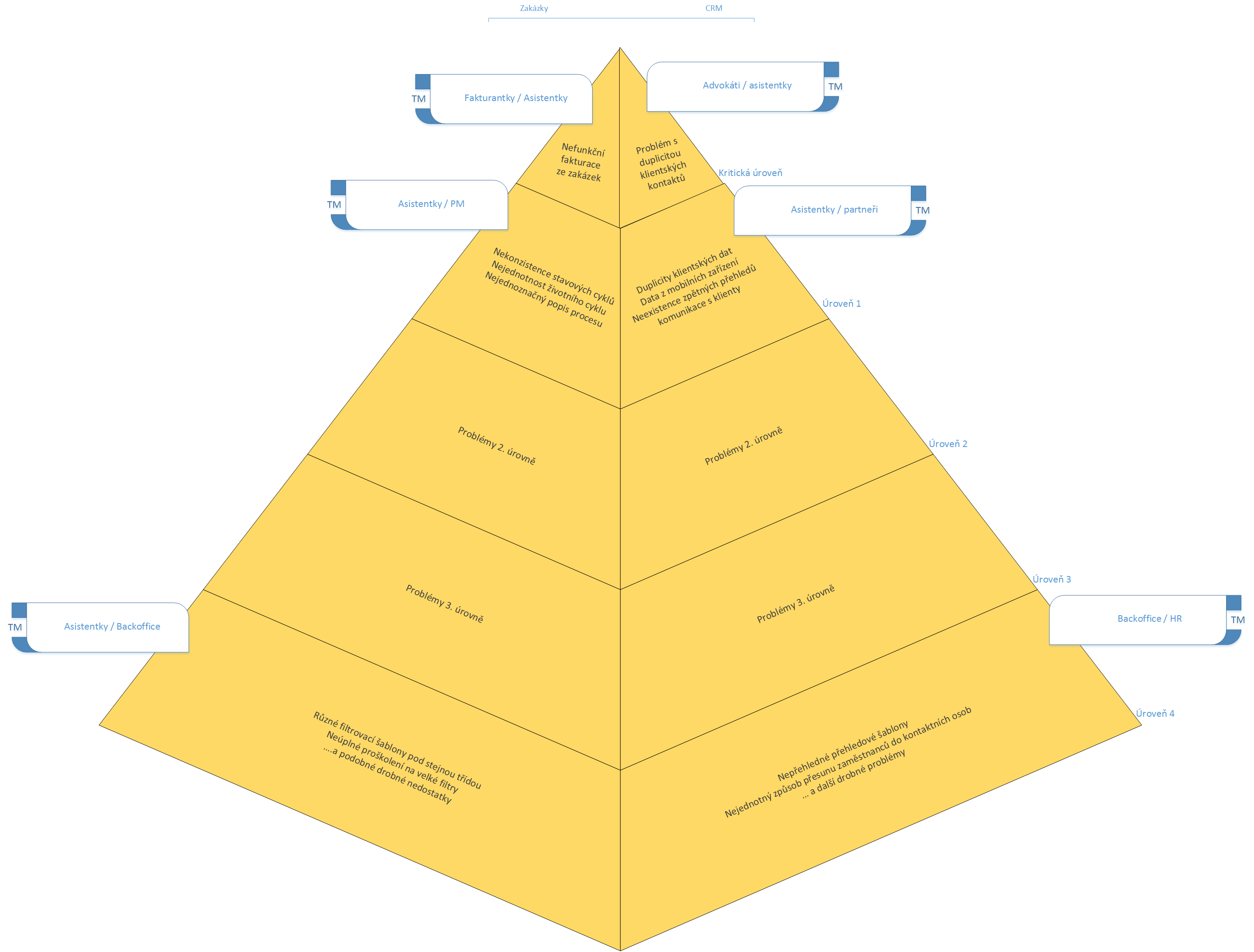 Obrázek č.1: Pyramida Product Backlogu v modulu zakázek a CRM / různé úrovně závažnosti problémů